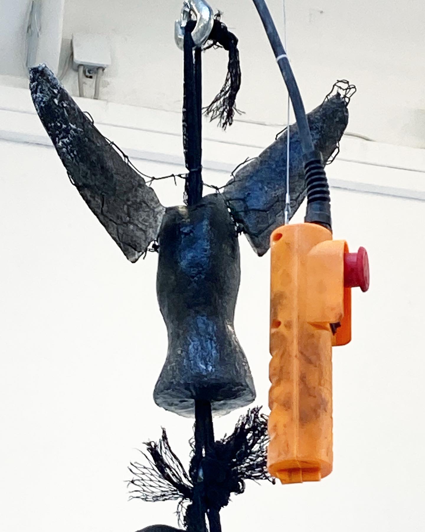 frozen asian ink with water, fish net, crane cable, aquarell paper