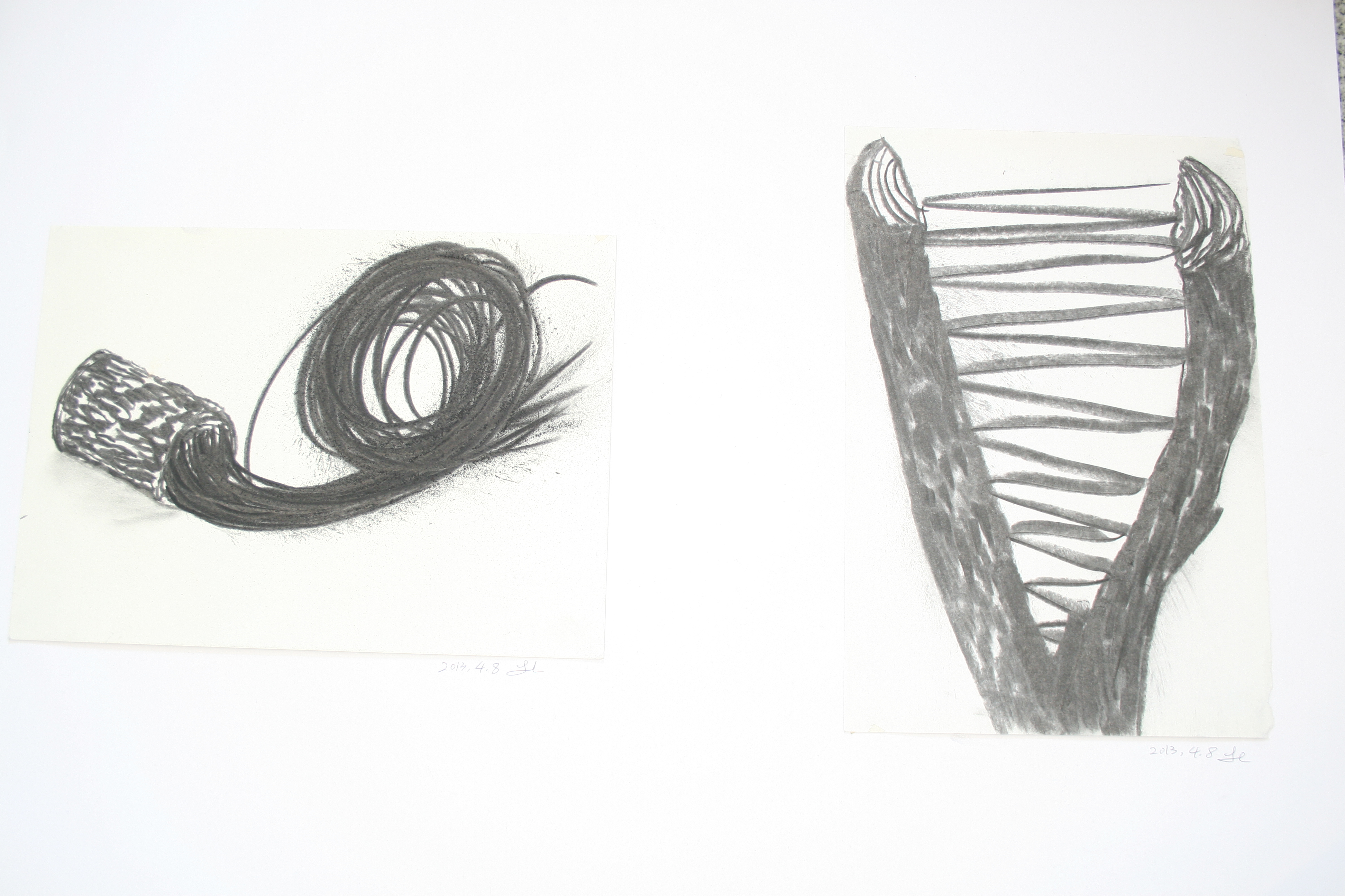 3 tree trunk, 3D pen, luminous filament, Installation